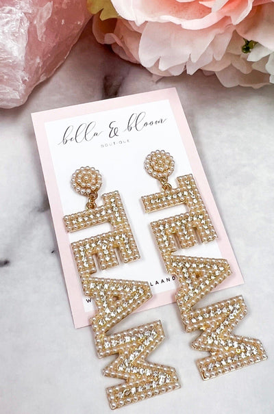 Fuzzy BRIDE Earrings: Gold/White