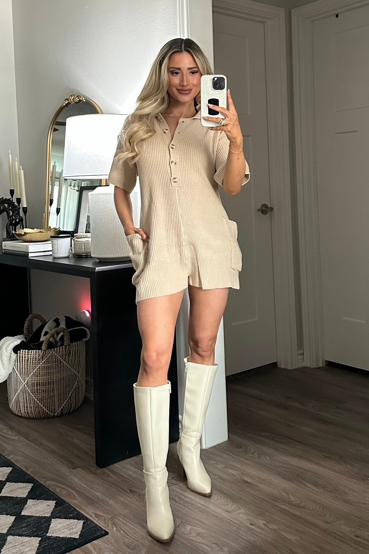At Your Leisure Knit Sweater Romper: Taupe
